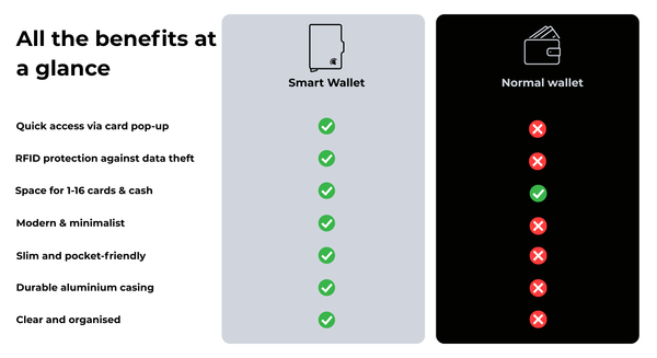 The Smart Wallet RFID combines minimalist design with maximum functionality. With just one click, you have instant access to your most important cards – quickly, securely, and elegantly.