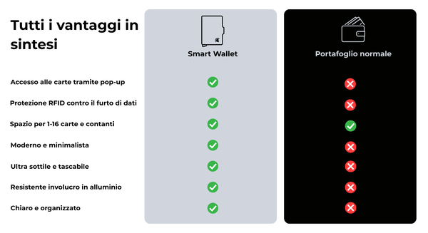 Il Smart Wallet RFID unisce un design minimalista alla massima funzionalità. Con un solo clic hai accesso immediato alle tue carte più importanti, in modo rapido, sicuro ed elegante.