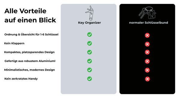 Schlüsselchaos war gestern. Mit dem Key Organizer hast du alles geordnet, griffbereit und kompakt. Kein Klappern, kein Verheddern!